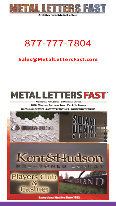 95%Custom metal letters and logos in stainless steel, brass, bronze, copper, aluminum and steel