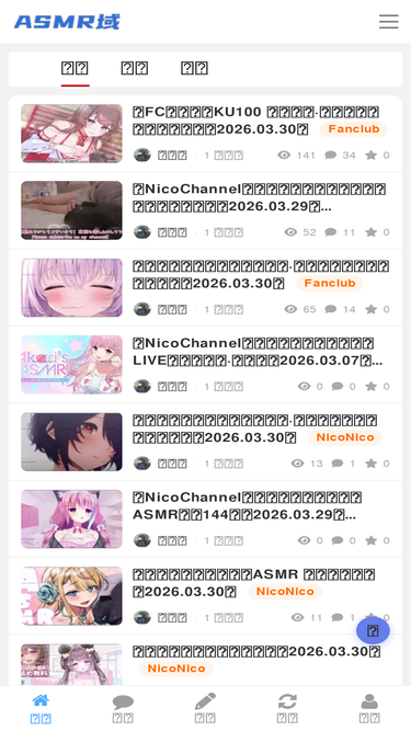 ASMR域每天分享全年龄同人音声资源,包含多个ASMR主播的掏耳朵、耳语、舔耳、吐息、耳朵按摩等asmr音频以及niconico会员限定视频存档,fantia赞助订阅与fanclub付费内容。