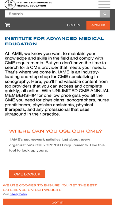 100%The Institute for Advanced Medical Education (IAME) has been a trusted provider of CME in ultrasound since 1991. Accredited by the ACCME, IAME offers AMA PRA Category 1™ CME Credits through a wide range of educational courses for physicians and sonographers.
