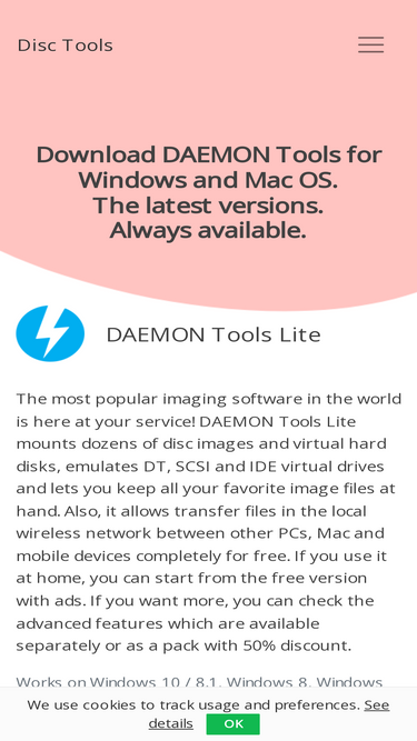 88%need to mount or create an image? daemon tools software is here at your service. choose from laconic lite, powerful ultra or old but gold pro and try for free.