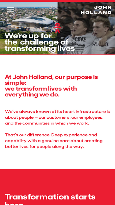 74%John Holland is all about connecting your sense of purpose to ours. We understand that your career is one of the biggest ways to have an impact on the world.