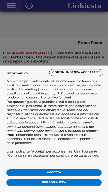 83%In base al Regolamento UE 679/2016 sulla protezione dei dati personali (GDPR), applicabile a decorrere dal 25 maggio 2018, il trattamento dei dati personali dovrà essere improntato ai principi di correttezza, liceità, trasparenza e tutela della riservatezza e dei diritti dell’interessato. Editoriale Linkiesta.it S.p.A., in qualità di proprietaria e gestore del sito www.linkiesta.it (il “Sito”), […]