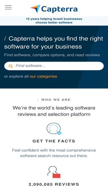 53%capterra israel helps millions of people find the best business software. with software reviews, ratings, infographics and a comprehensive list of business software.