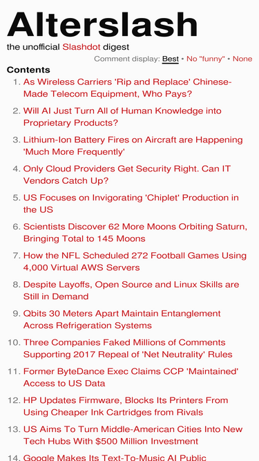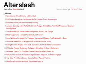 alterslash picks the best 5 comments from each of the day’s slashdot stories, and presents them on a single page for easy reading.
