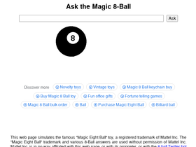 57%magic 8 ball, an online fortune teller. find out what fate has in store for you! ask the magic eight ball and it'll answer all of your questions.