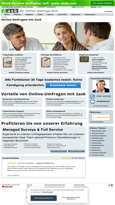 62%with 2ask you can easily create, conduct & evaluate your online survey. our online survey tool is easy to use, privacy compliant, secure & fast.