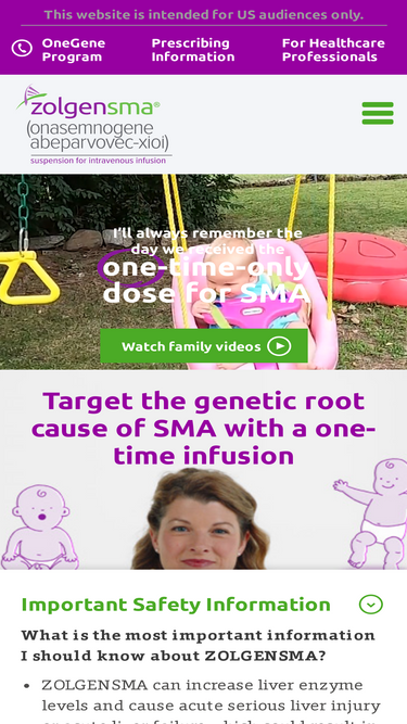 87%ZOLGENSMA is a prescription gene therapy used to treat spinal muscular atrophy (SMA) in children less than 2 years old. Intended for US audiences only.