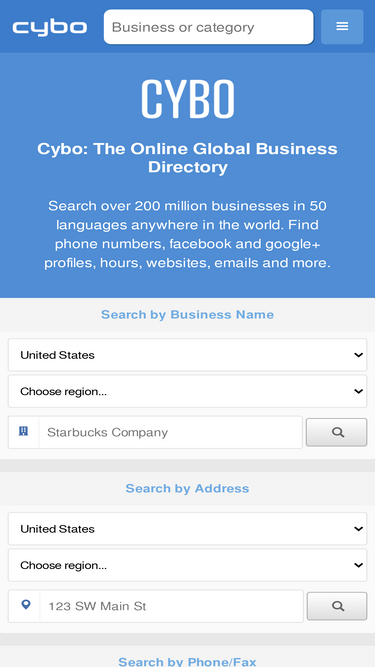 100%Search over 400 million businesses in 50 languages anywhere in the world. Find phone numbers, facebook and google profiles, hours, websites, emails and more.
