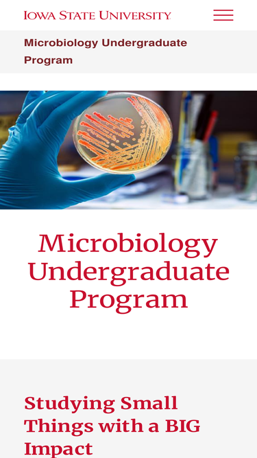 68%Transferring to Iowa State UniversityUndergraduate Microbiology ProgramSeveral of our current students have started their Iowa State University Microbiology four year program at a local community college or other four year college or university. Students currently taking classes at a community college are encouraged to consult a transfer plan listed below to see what courses offered at the community college fit well into the microbiology program of study.