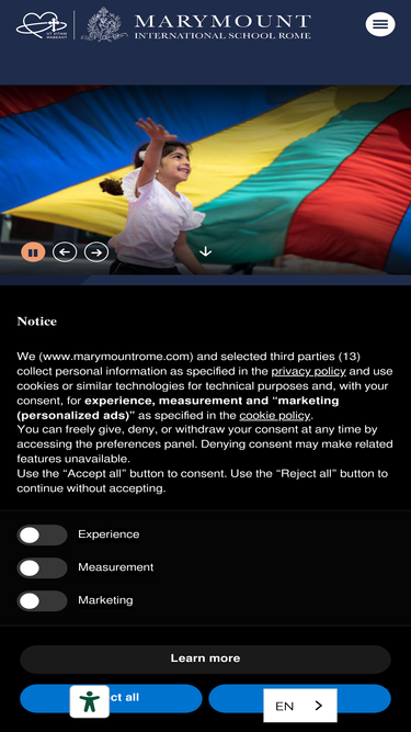 94%marymount international school rome is a private, catholic, co-educational day school that seeks to nurture students and their unique talents as a whole, beginning from pre-early childhood (age 2) through grade 12. in addition to a stimulating and caring environment in which english is the language of instruction, marymount offers students: a values-based education modeled on an american curriculum with international standards and benchmarks.