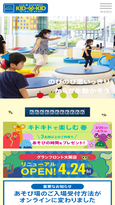 88%室内遊び場「キドキド」をご利用になる前に、「お願い」についてよくお読みください。子供の対象年齢や注意事項、施設における禁止事項などをご案内しています。すべてご了承いただいた上でご利用ください。