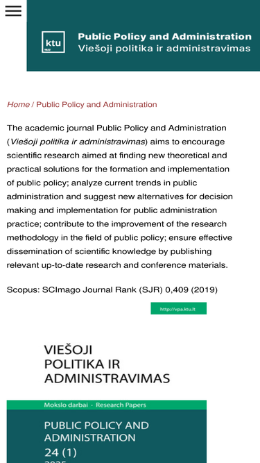 theoretical aspects of public administration; transformations and reforms of modern public administration; public policy and its structural-functional analysis; civil service and the management of public sector staff