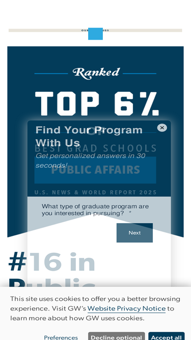 55%The Trachtenberg School of Public Policy & Public Administration is part of Columbian College of Arts and Sciences at George Washington University.