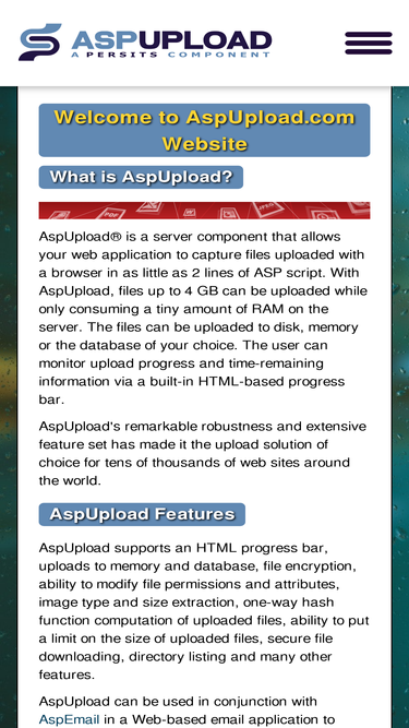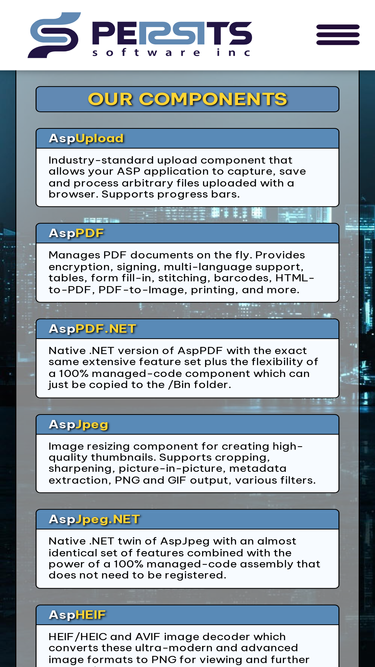 100%asp components for file upload, image manipulation and resize, graph plotting, file download and zipping. activex controls for scanning with twain and more.