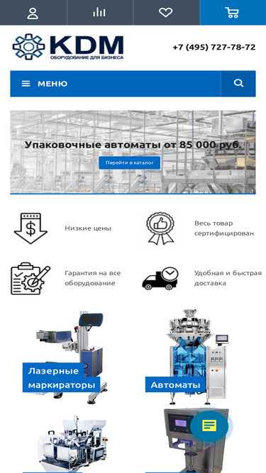 72%КДМ Трейдинг предлагает упаковочные автоматы вертикального типа для фасовки и упаковки продуктов в термосвариваемые пленки от 35 000 ₽. Фото, отзывы, гаранти. Доставка по Москве и России. Сделать заказ можно по телефону: +7 (495) 727-78-72.