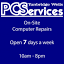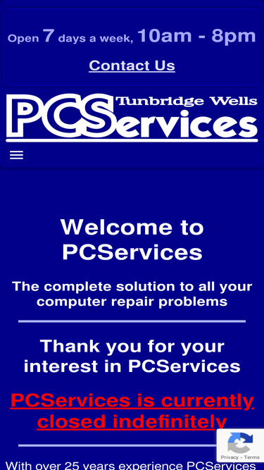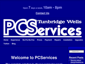 100%frameset page for pcservices of tunbridge wells, providing expertise in diagnostics, repair, and maintenance of hardware and software issues in the local area.