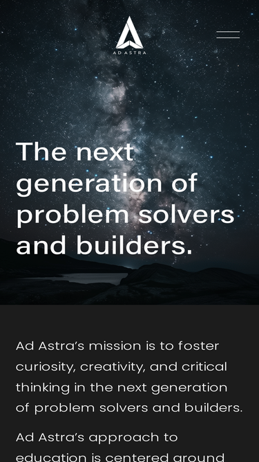 Ad Astra’s mission is to foster curiosity, creativity, and critical thinking in the next generation of problem solvers and builders. Ad Astra’s approach to education is centered around hands-on, project-based learning, where children are encouraged to explore, experiment, and discover solutions to r