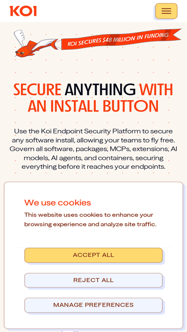 84%Koi secures $48M to revolutionize endpoint security, delivering innovative protection for the modern software stack and enterprises.