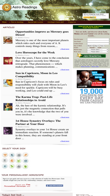 free astrological reports and natal charts. free horoscopes and compatibility readings from astro-readings.com.