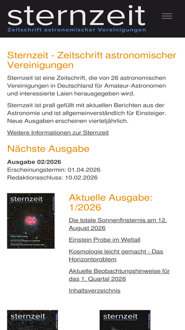 100%sternzeit ist eine zeitschrift, die von 26 astronomischen vereinigungen in deutschland für amateur-astronomen und interessierte laien herausgegeben wird. sternzeit erscheint vierteljährlich.