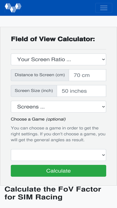 100%professional gamers only do sim races with the correct field of view (fov) settings! here you find a calculator to get the right fov factor for sim racing games!