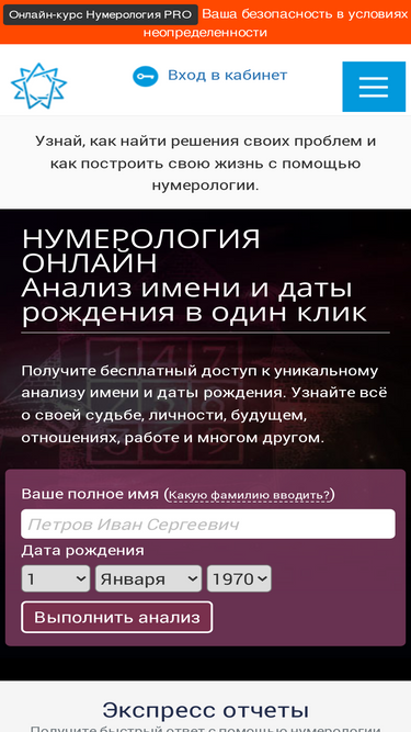 89%нумероскоп открывает доступ к знаниям тысячелетий! на этом сайте собрано 98% всей информации о нумерологии. получите бесплатный доступ к уникальному анализу имени и даты рождения. более 58 уникальных расчетов о судьбе, личности, будущем, отношениях, работе и многом другом.