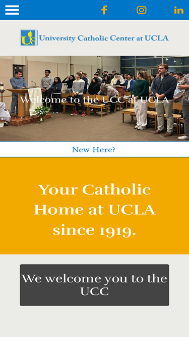 76%this is your catholic home at ucla! for 100 years, the university catholic center has served the spiritual needs of countless ucla students, faculty and staff. education happens both inside and outside the classroom, and the ucc is committed to helping you grow in all dimensions of your life.