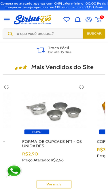 82%monte sua loja de 1,99 com a sirius 1,99 em até 6x sem juros. compre receba em casa. a maior variedade de artigos de 1,99 com preços especiais você encontra aqui. confira aqui.