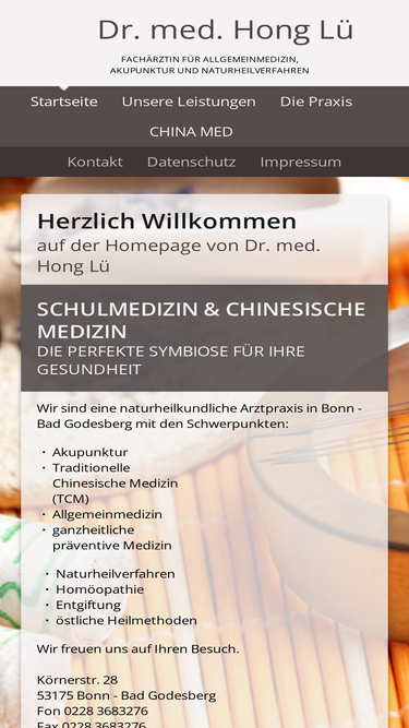 98%fachärztin für allgemeinmedizin, naturheilverfahren und akupunktur. arztpraxis in bonn mit den schwerpunkten praktische medizin, naturheilkunde, akupunktur und östliche heilmethoden.