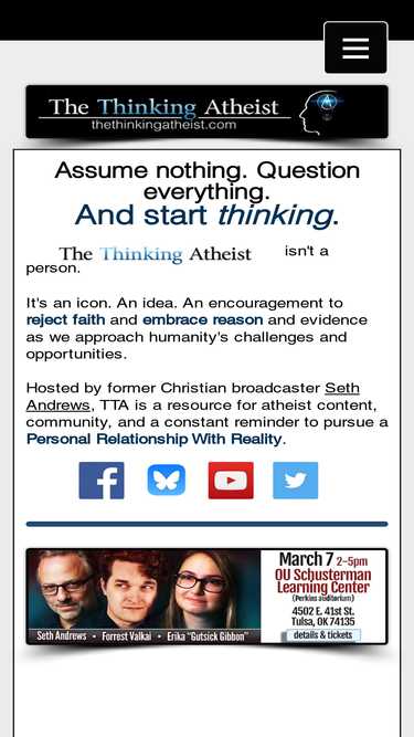 100%The Thinking Atheist is a video/podcast resource and online community hosted by Seth Andrews.