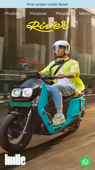 75%our river indie is the suv of scooters, it's electric. ride with us and feel the difference.