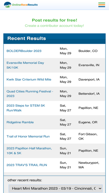 83%online race results hosts marathon, half-marathon, 10k, 5k, and triathlon results.