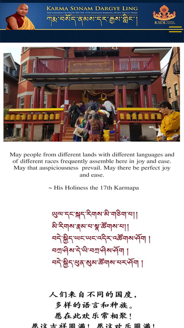 98%Karma Sonam Dargye Ling (KSDL) is a Tibetan Buddhist Temple located in Toronto, Ontario, Canada. KSDL is the Canadian Seat of His Holiness the 17th Gyalwang Karmapa, Ogyen Trinley Dorje