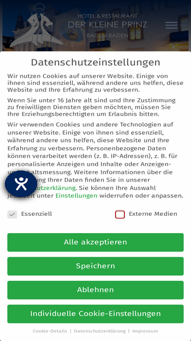 87%Hotel Der Kleine Prinz in Baden-Baden Germany is centrally located close to all important sights. Private hotelb parking available.