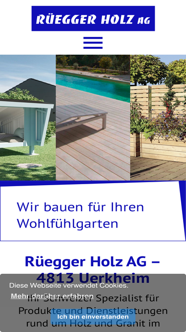 88%Rüegger Holz AG ist Ihr Schweizer Spezialist für Produkte und Dienstleistungen rund um Holz und Granit im Garten. Kontaktieren Sie uns!