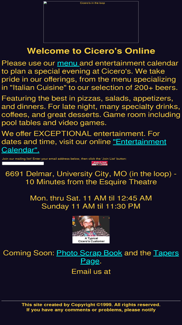 97%whether you’re a first-timer or a regular, cicero’s has been a fixture in the university city loop since 1977. famous for it's pizza, beer selection and music