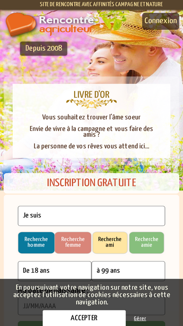 rencontre agriculteur propose aux agriculteurs et aux passionnés de la campagne un site permettant une rencontre. destiné aussi aux passionnés de la nature et des animaux.