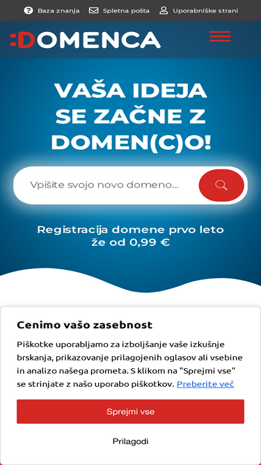 53%T: +386 (0)4 58 35 444 E: podpora@domenca.com Webtasy, d.o.o. Dunajska cesta 110 SI-1000 Ljubljana Splošni podatki podjetja DDV ID številka: SI38077736 Zavezanec za DDV: DA Matična številka: 1883763000 Direktor: Tomaž Koštial, Matija Jekovec Osnovni kapital: 13.812,55 EUR Srg: 2002/02234 Št. vložka: 1/07167/00 TRR: SI56 6100 0002 4238 319 (DH d.d.)