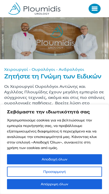 83%Ο Αντώνιος & Αχιλλέας Πλουμίδης – Εξειδικευμένοι Χειρουργοί Ουρολόγοι & Ανδρολόγοι – μαζί με την ομάδα τους προσφέρουν σύγχρονη διάγνωση & θεραπεία, στην Αθήνα.