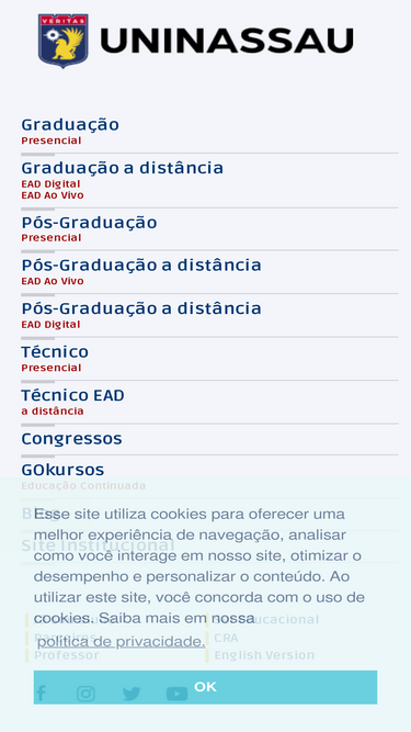 89%Conceito Máximo no MEC em diversos cursos. Graduação tradicional, graduação de curta duração, pós-graduação, cursos de extensão, congressos e eventos em geral. Recife, João Pessoa, Campina Grande, Salvador, Lauro de Freitas, Maceio, Natal, Fortaleza, Belem, Terezina, Sao Luis, Parnaiba, Aracaju, Petrolina, Feira de Santana,.