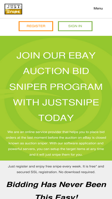 84%justsnipe auction sniper places your bid on ebay seconds before the auction closes! register now for the best free online bid sniper & improve your auction bids