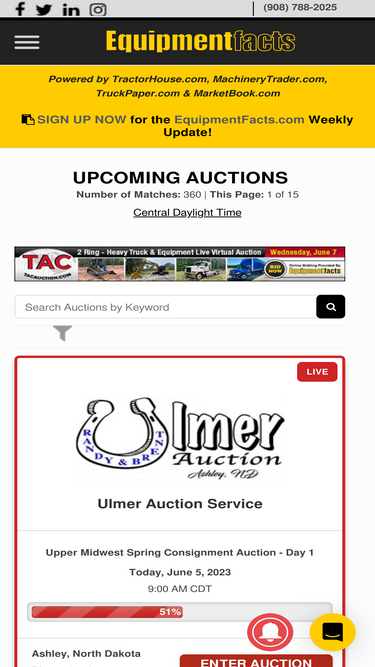 equipmentfacts.com ranks as the 4th most similar website to auctiontime.com and tractorhouse.com ranks fifth in February 2026.