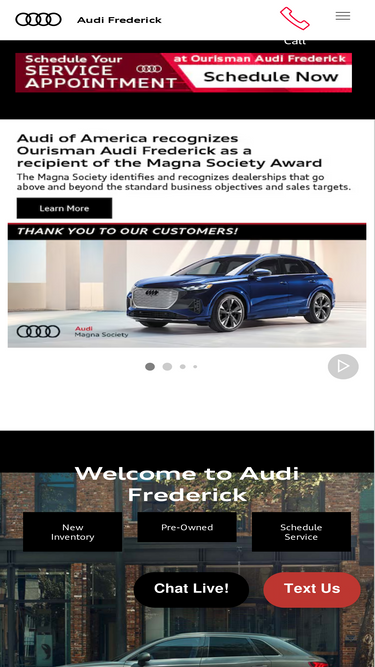 81%Explore luxury & performance at Audi Frederick. Discover stunning Audi cars & SUVs. Visit our dealership to find your next new or used Audi vehicle!