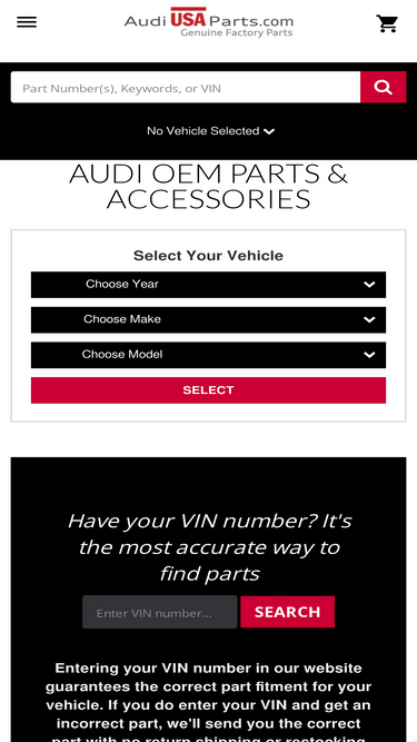 we are one of the largest retailers of genuine volkswagen and audi parts and accessories in the u.s. our huge inventory and knowledgable staff will insure that you get the right part at the right price right away. because we are an affiliate of an authorized dealer, all genuine parts sold through genuinevwaudiparts.com have a full 12 month manufacturers warranty good at any vw or audi dealership in the united states and canada.