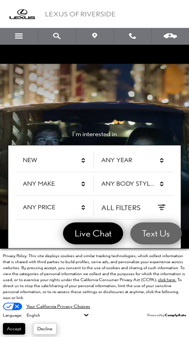visit lexus of riverside for a variety of new and used cars by lexus, serving riverside, california. we serve san bernardino, mssion viejo, corona ca, ontario, newport beach and are ready to assist you!