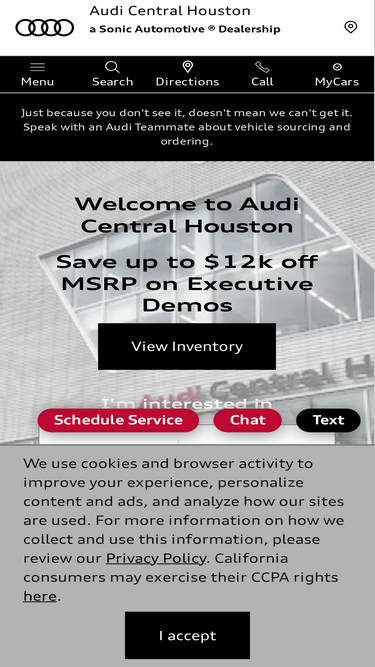 96%find audi excellence in the heart of houston. audi central houston's 7-floor facility is home to exceptional custom service for car sales and service alike.