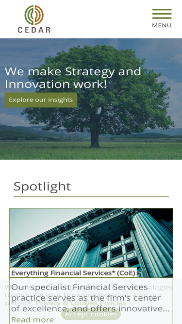 93%Cedar is a global consulting, research and analytics group with a 30 year track record and 1000 clients. It helps client transform in the area of strategy, process, strategic human capital, and business technology.