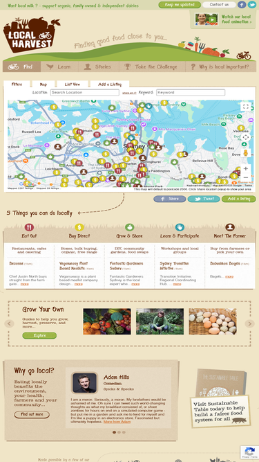 Enter your postcode to find farmers markets, restaurants, fruit and vegie boxes, community gardens, courses, organic retailers, cafes, pick-your-own farms, food coops and more. Plus grow-your-own guides and grower's stories.