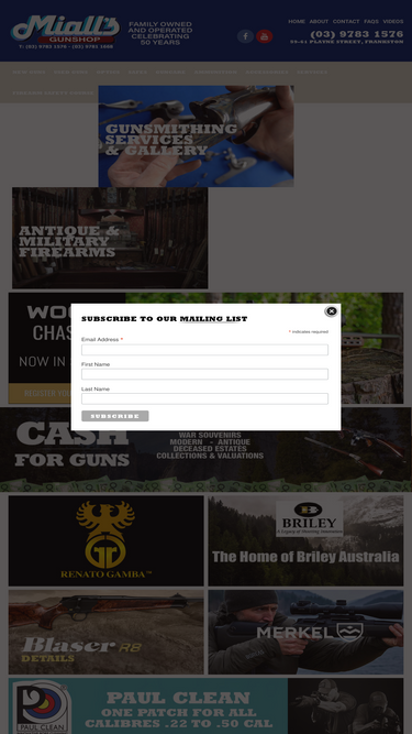 95%Location 59-61 PLAYNE STREET, FRANKSTON VIC 3199 Phone: (03) 9783 1576 Fax: (03) 9783 7887 DLN: 409-043-91F Sales: contact@mialls.com.au Gunsmithing: brileygunsmithing@mialls.com.au Terms and Conditions: T & C OPENING HOURS MONDAY – FRIDAY: 9:30AM – 5:30PM SATURDAY: 9:00AM – 1:00PM SUNDAY: -CLOSED- PUBLIC HOLIDAYS: -CLOSED-
