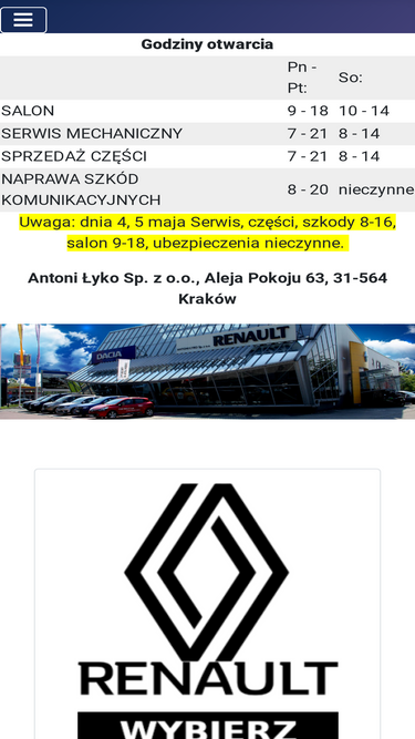 85%antoni łyko – autoryzowany serwis renault i dacia, dealer samochodów używanych, demonstracyjnych, zastępczych, poleasingowych, użytkowych, dostawczych i modyfikowanych